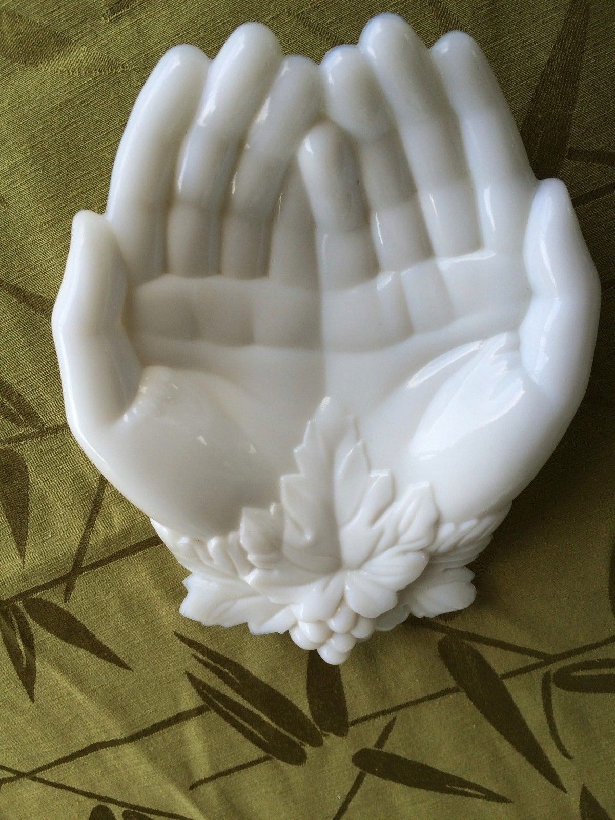 Title (ebay affiliate link): VINTAGE WESTMORELAND MILK GLASS QUEEN VICTORIA''S HANDS GRAPES & LEAVES DISH #2