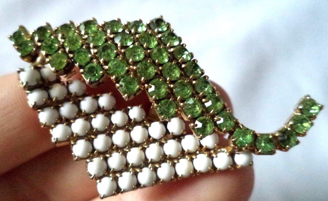 Title (ebay affiliate link): STUNNING VINTAGE ESTATE HIGH END MILK GLASS RHINESTONE FLOWER 2" BROOCH! G6821R