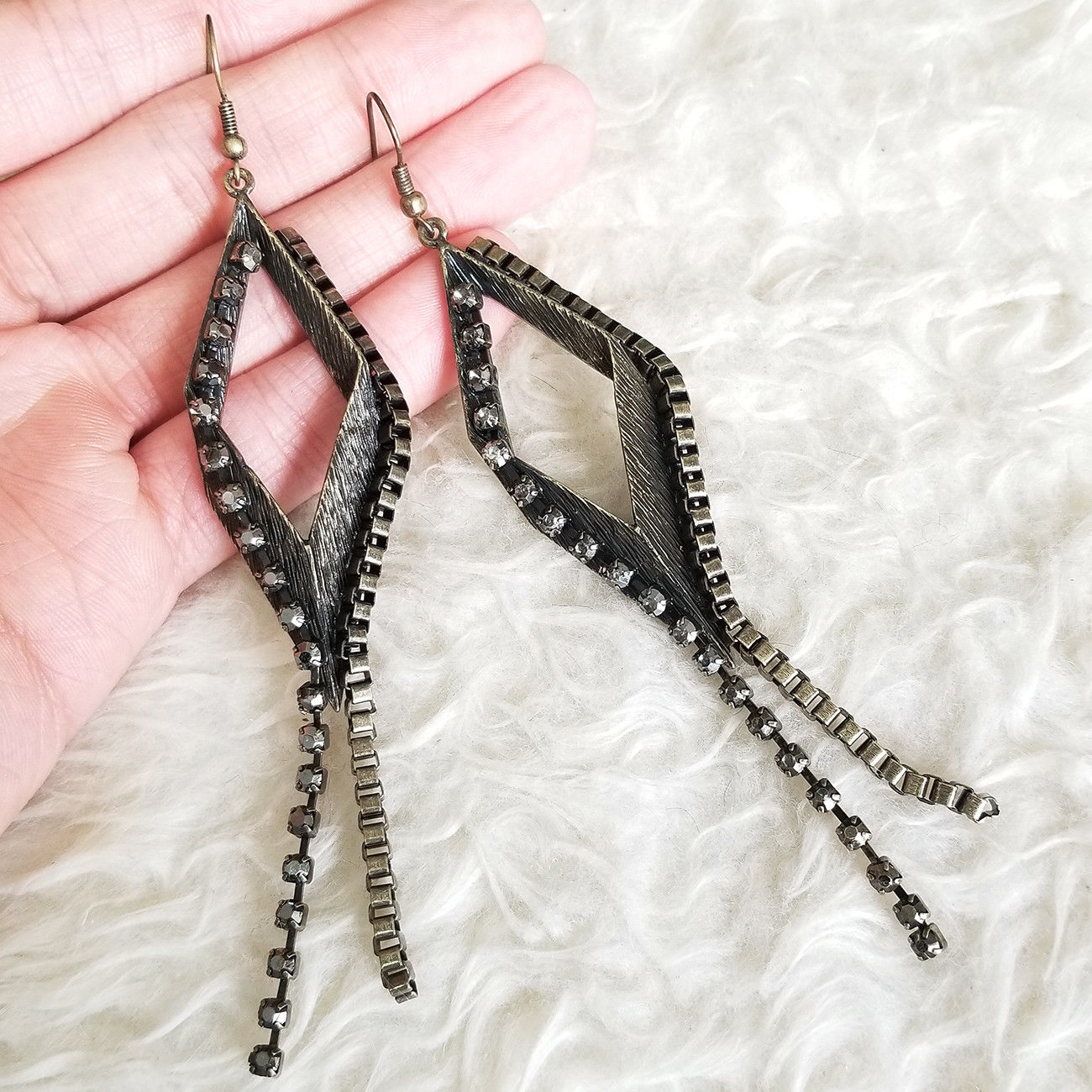 Title (ebay affiliate link): Womens Antique-Tone Vintage Rhombus Chains Dangle Drop Fall Hook Earrings STYLE