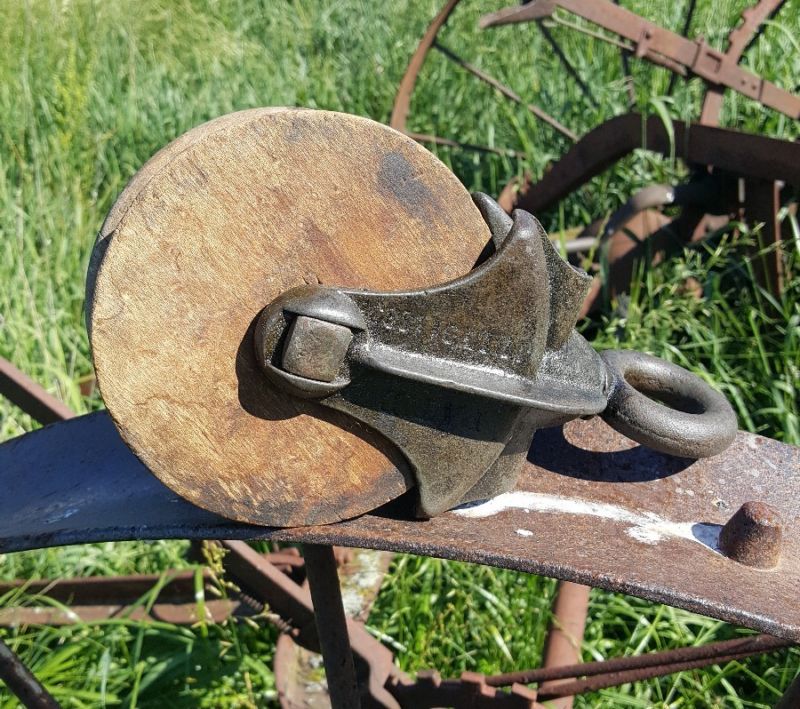 Vintage Cast Iron wood Barn Pulley sling Rustic wheel Patented July 31 1883