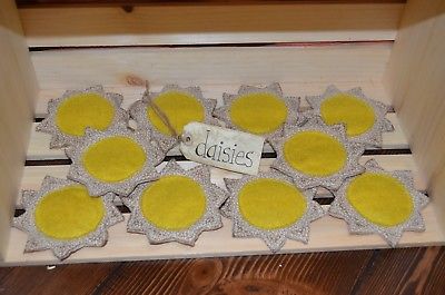 Title (ebay affiliate link): 10 Primitive Flat Quilted Spring Flowers DAISIES Ornies Fillers Tucks Make Do''s