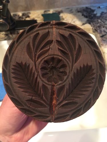 Title (ebay affiliate link): Thistle 19th C Folk Art Carved Maple Wood Lathe Turned Butter Stamp Print Mold