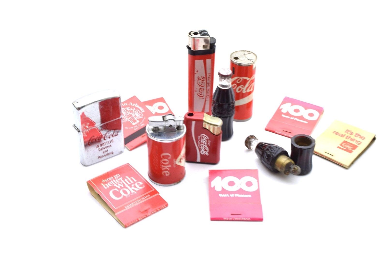 Title (ebay affiliate link): Vintage Coca Cola COKE Lighter Bottle Can Matches- Lot of 13 Pieces