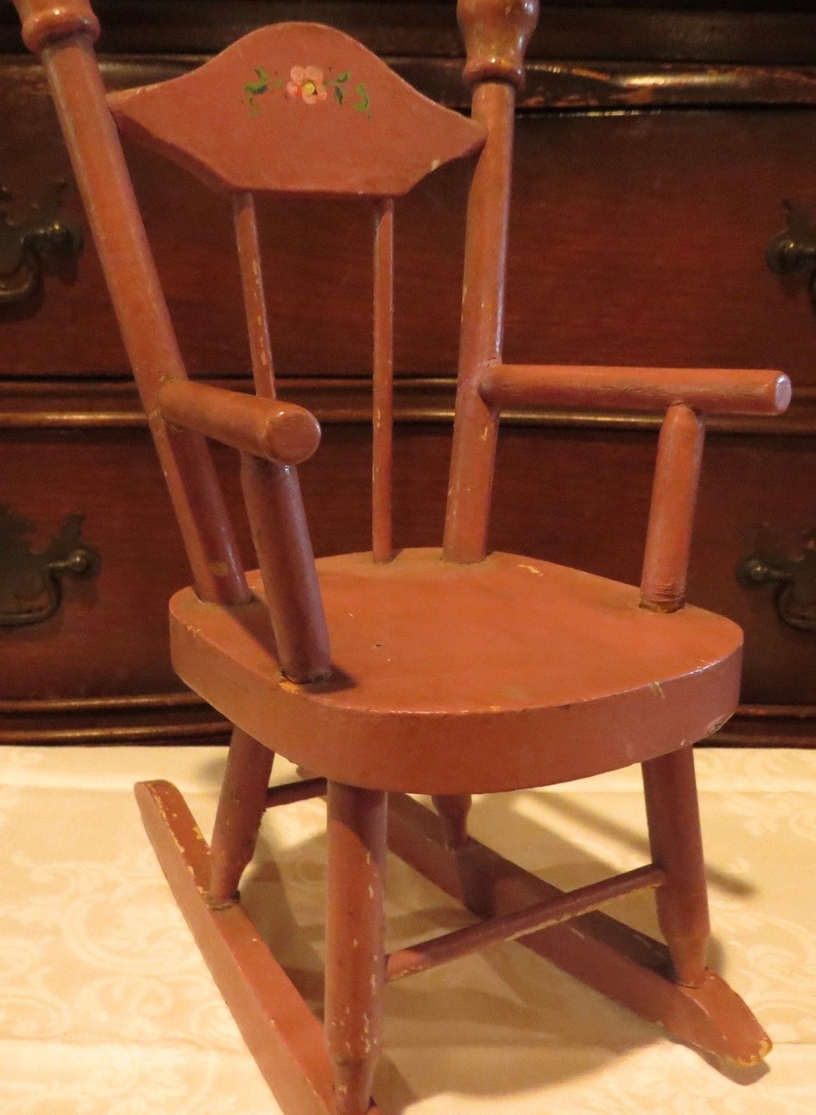 Title (ebay affiliate link): Antique 10" Doll Wooden Rocker to Display Antique Bisque or Vintage Doll