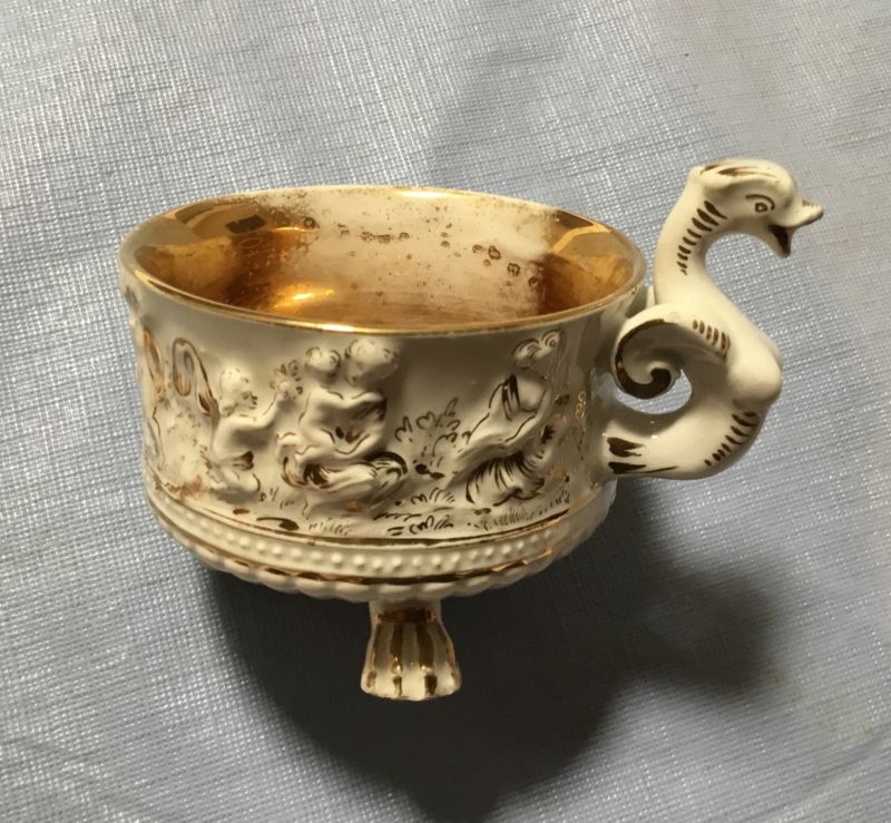 Title (ebay affiliate link): VINTAGE CAPODIMONTE GOLD TRIM CUP GARGOYLE HANDLE WITH NUDES 2 1/2"