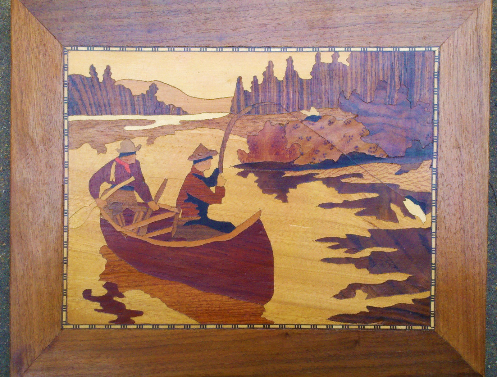 Title (ebay affiliate link): Marquetry Wood Inlay Harry G Mountz Delaware Artisan THE CATCH 1991 Folk Art