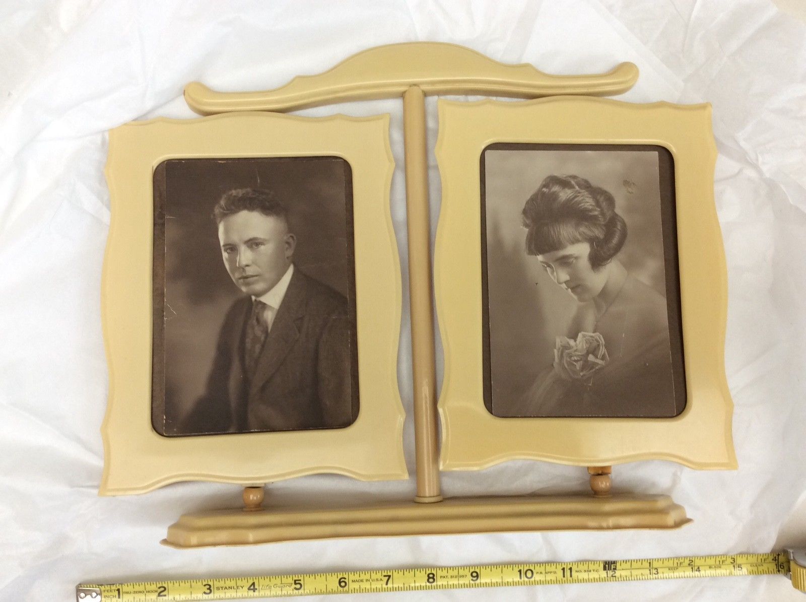 Title (ebay affiliate link): ANTIQUE VTG. DECO CELLULOID FRENCH IVORY DOUBLE PICTURE FRAME AND STAND - AS IS