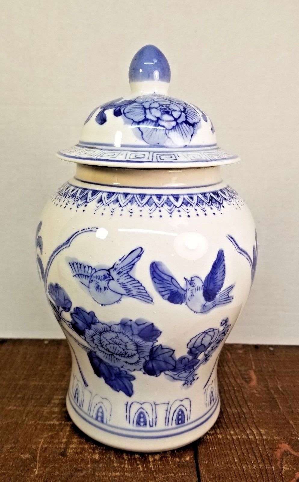 Vintage Chinese Blue and White Ginger Jar with Lid