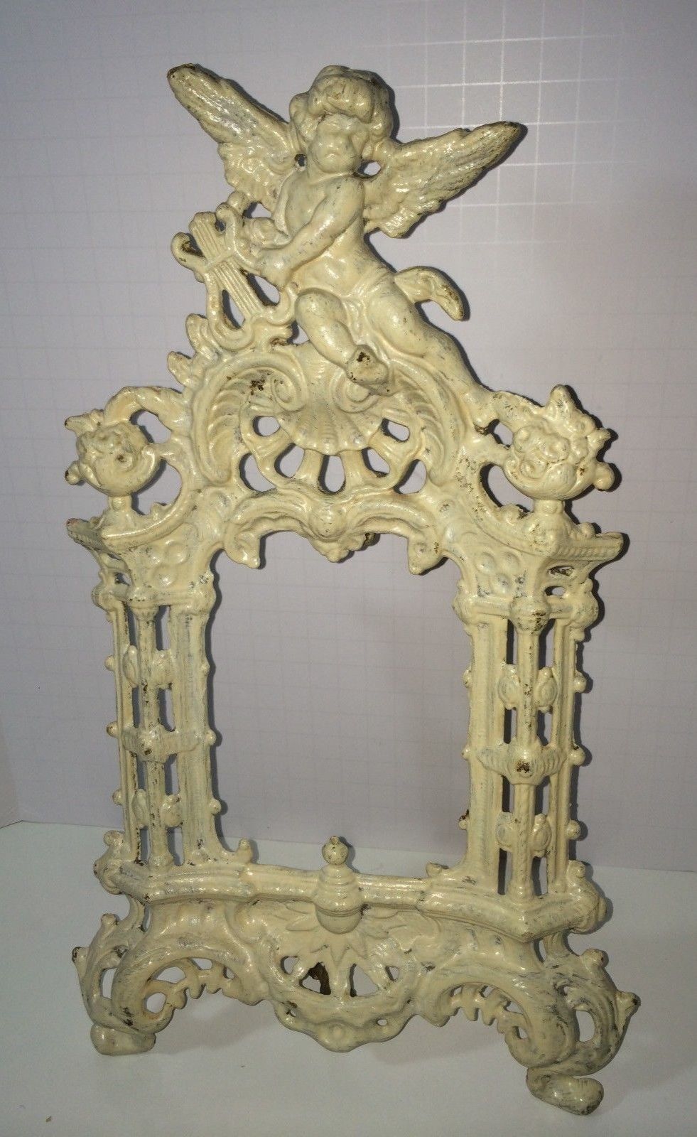 Title (ebay affiliate link): Antique Rococo Style Mid Century Cast Iron Picture Frame With Harp Playing Angel
