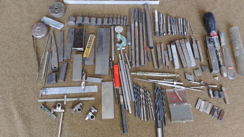 Title (ebay affiliate link): Large Lot of Machinist Tools -taps, reamers, cutting tool bits, indicator rod
