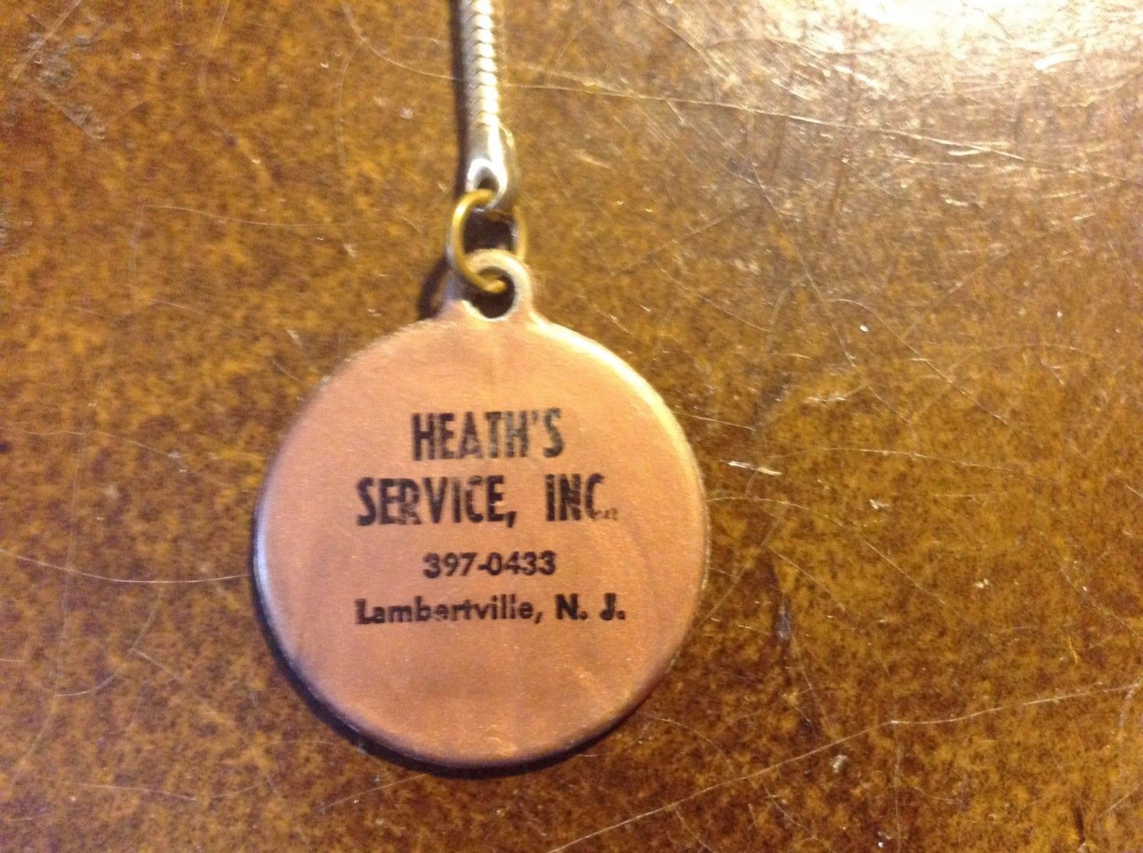 Vintage LambertVille Advertising Heath''s Gas Station Key Chain Religious Theme
