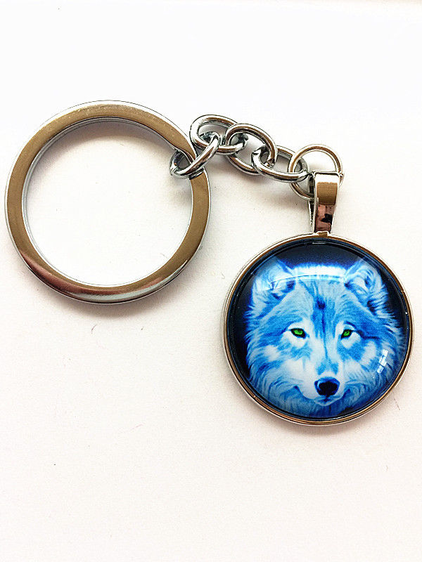 Vintage wolf Keychain Cabochon Tibetan silver Glass Metal Key Ring