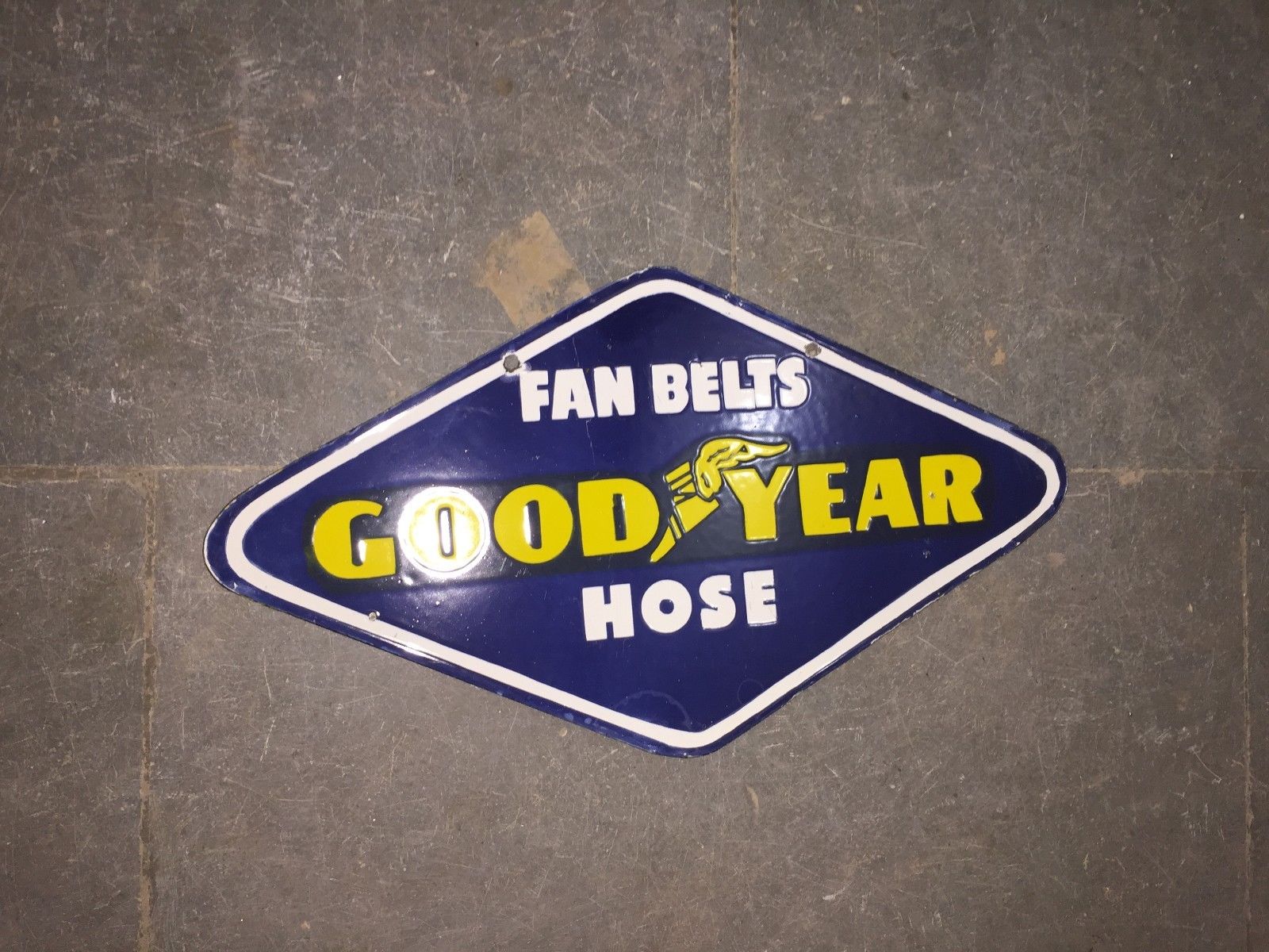 Porcelain Goodyear Fan Belts Tyres Sign SIZE 10" X 18" INCHES DOUBLE SIDED