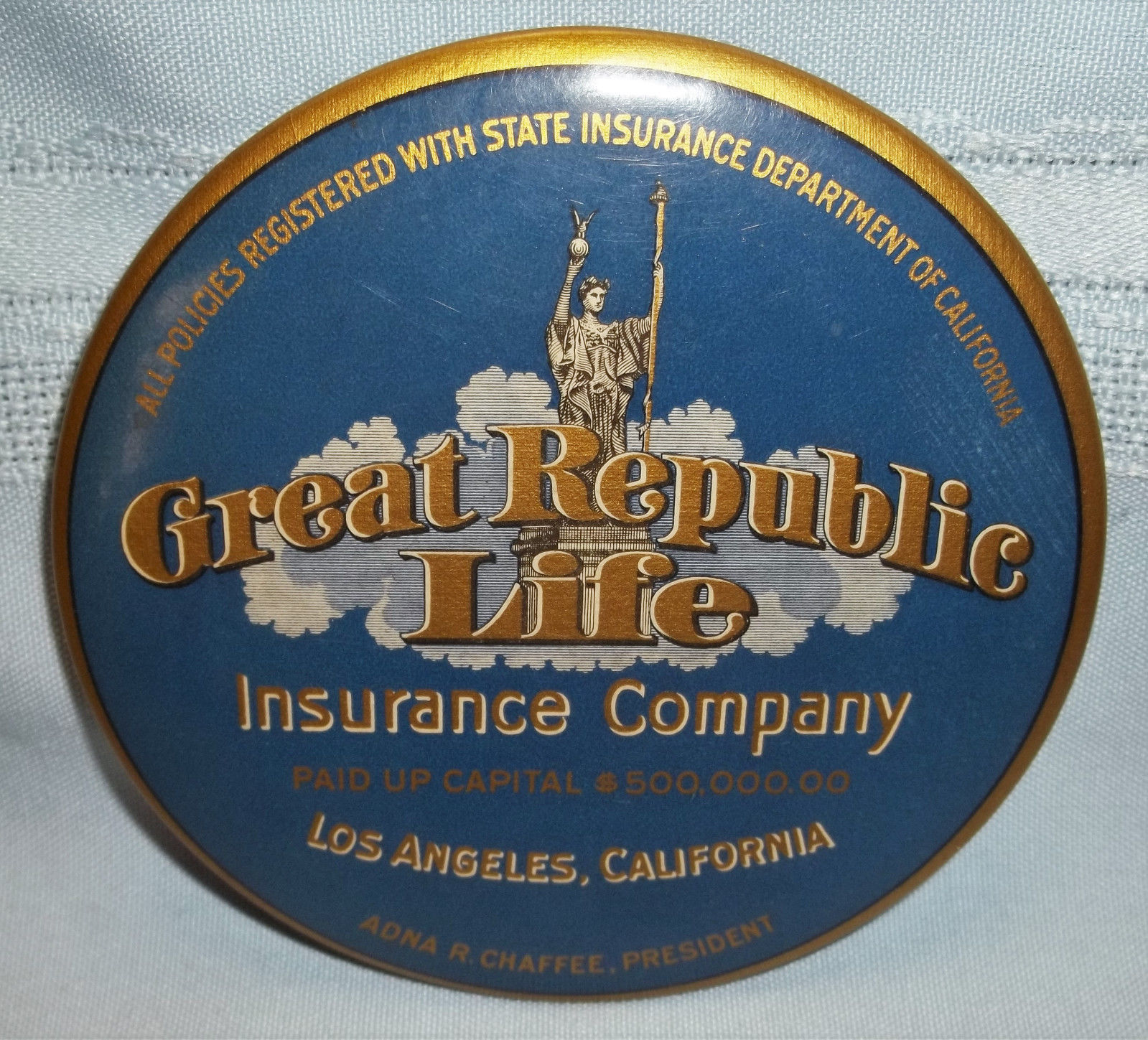 Title (ebay affiliate link): VTG. GREAT REPUBLIC LIFE INSURANCE CO. POCKET MIRROR/PAPERWEIGHT-LOS ANGELES,CA.