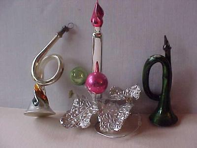 3 Antique Blown MERCURY Glass Christmas Tree Ornaments (1) Candle (2) Bugles