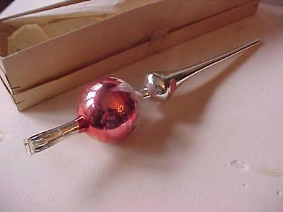 Antique Blown Mercury Glass Christmas TREE TOPPER Western Germany Red Silver IOB