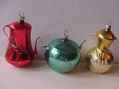 Antique Blown Mercury Glass TEAPOT Christmas Ornaments West Germany Set Of 3