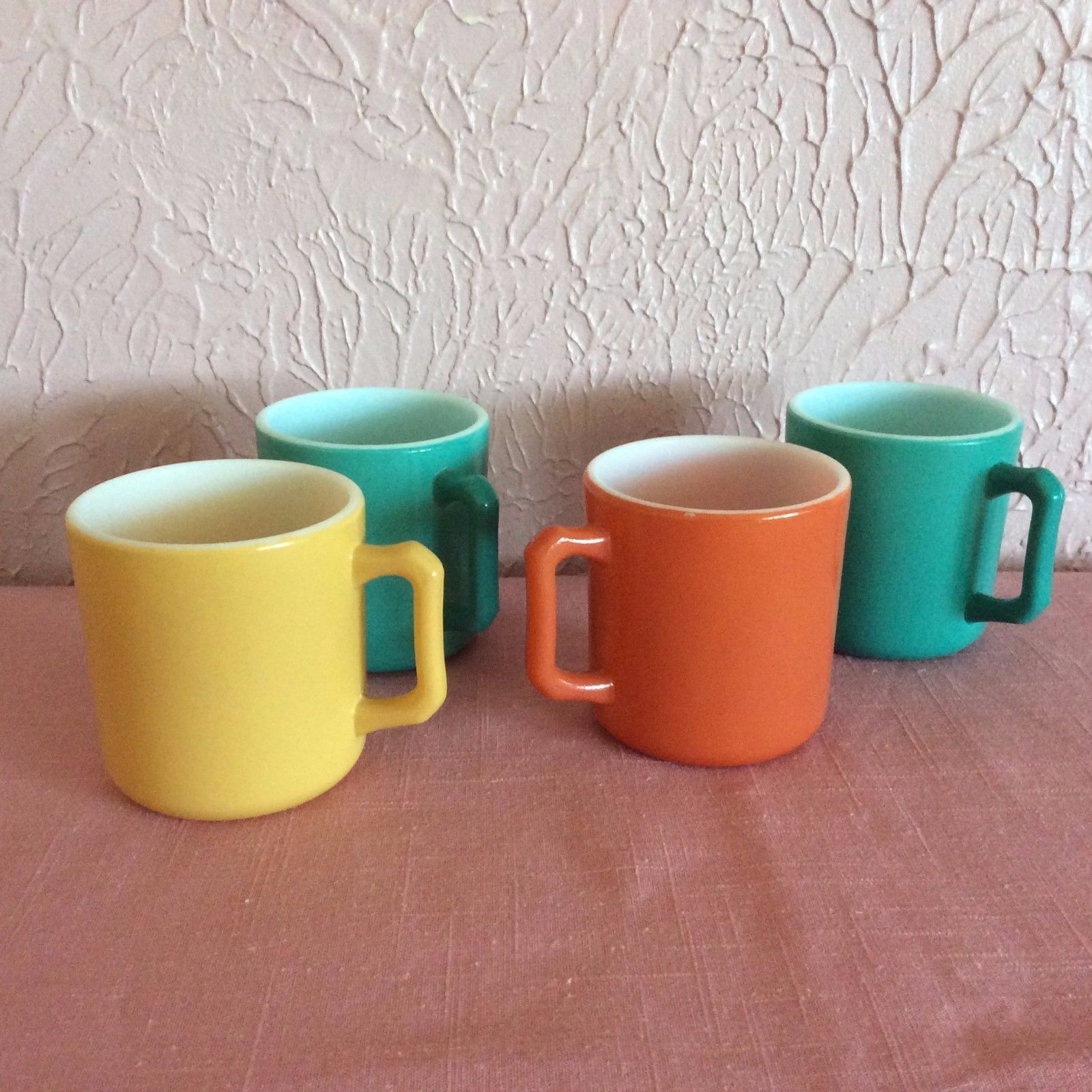 Title (ebay affiliate link): Anchor Hocking Coffee Mugs Set 4 Milk Glass Vintage Cups Orange Yellow Blue