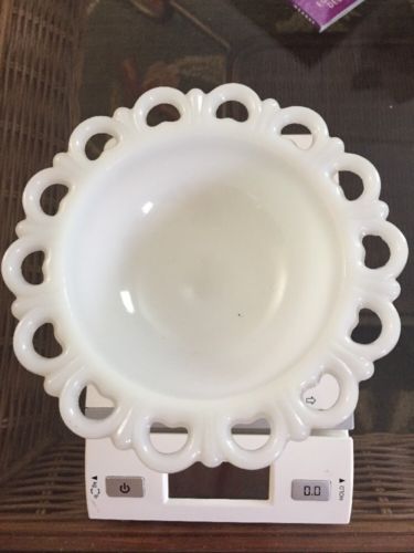 Title (ebay affiliate link): Vintage Milk Glass - Bowl on pedestal, open lace pattern nut fruit candy bowl
