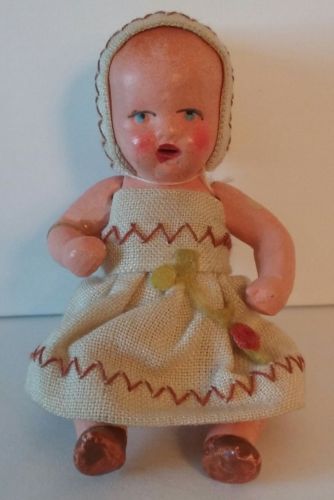 Antique Hertwig Miniature Bisque 3" Baby Doll