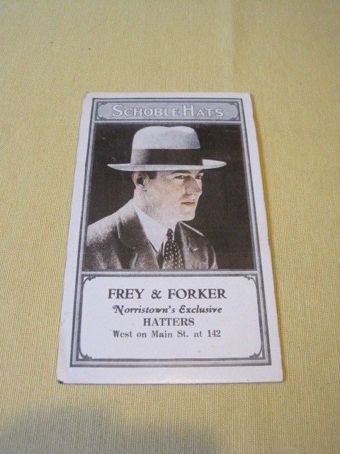 Vintage Advertising Ink Blotter Schoble Hats Frey & Forker Norristown
