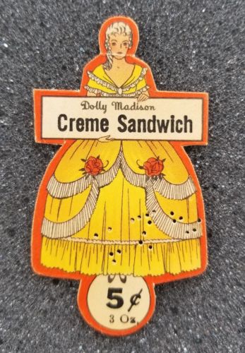 VINTAGE DOLLY MADISON CREME SANDWICH 5 CENT LABEL