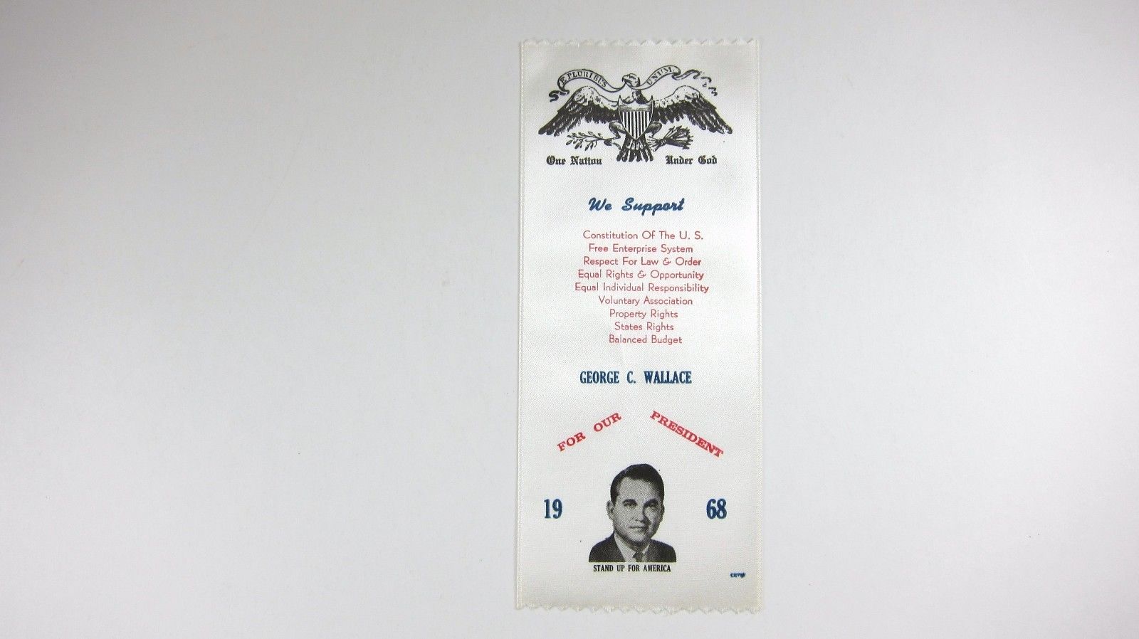 Vintage 1968 George C. Wallace Presidential Campaign Ribbon