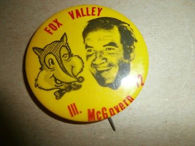 Title (ebay affiliate link): VINTAGE METAL POLITICAL PIN PINBACK BADGE FOX VALLEY ILL McGOVERN 1972