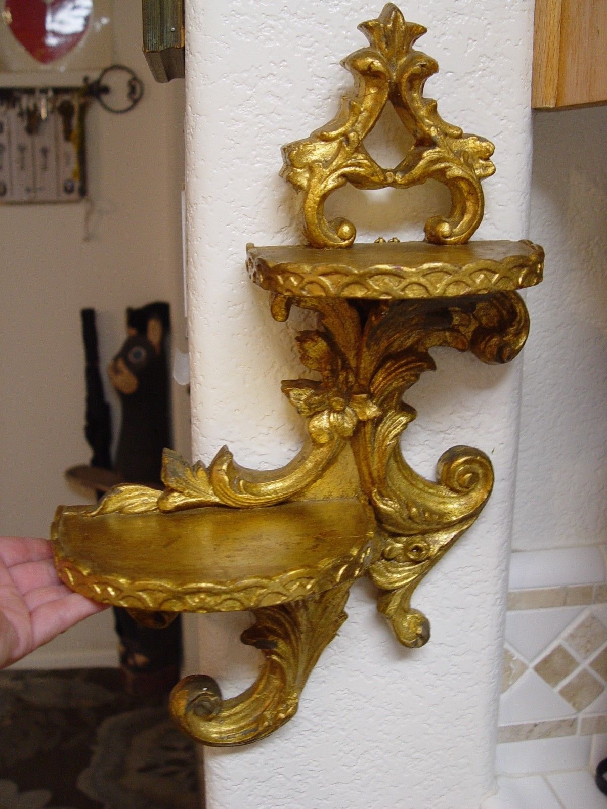 Title (ebay affiliate link): Antique Italian Tole Gilt Wooden 2-Tier 16.5" Wall Shelf Very Ornate