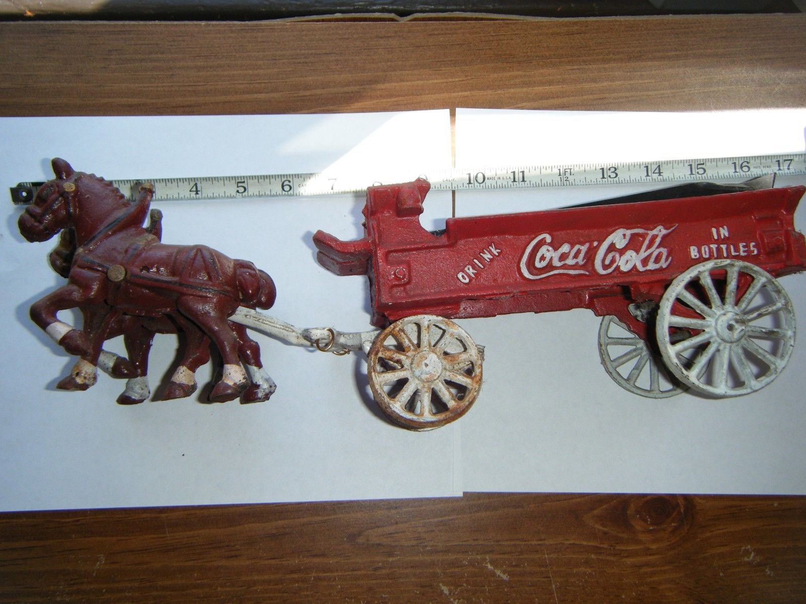 Title (ebay affiliate link): Vintage cast iron Coca Cola horse & wagon toy