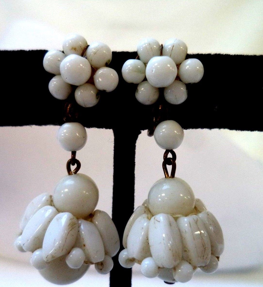Title (ebay affiliate link): STUNNING VINTAGE ESTATE MILK GLASS FLOWER LEAF 1 3/8" SCREW EARRINGS!!! 1113W
