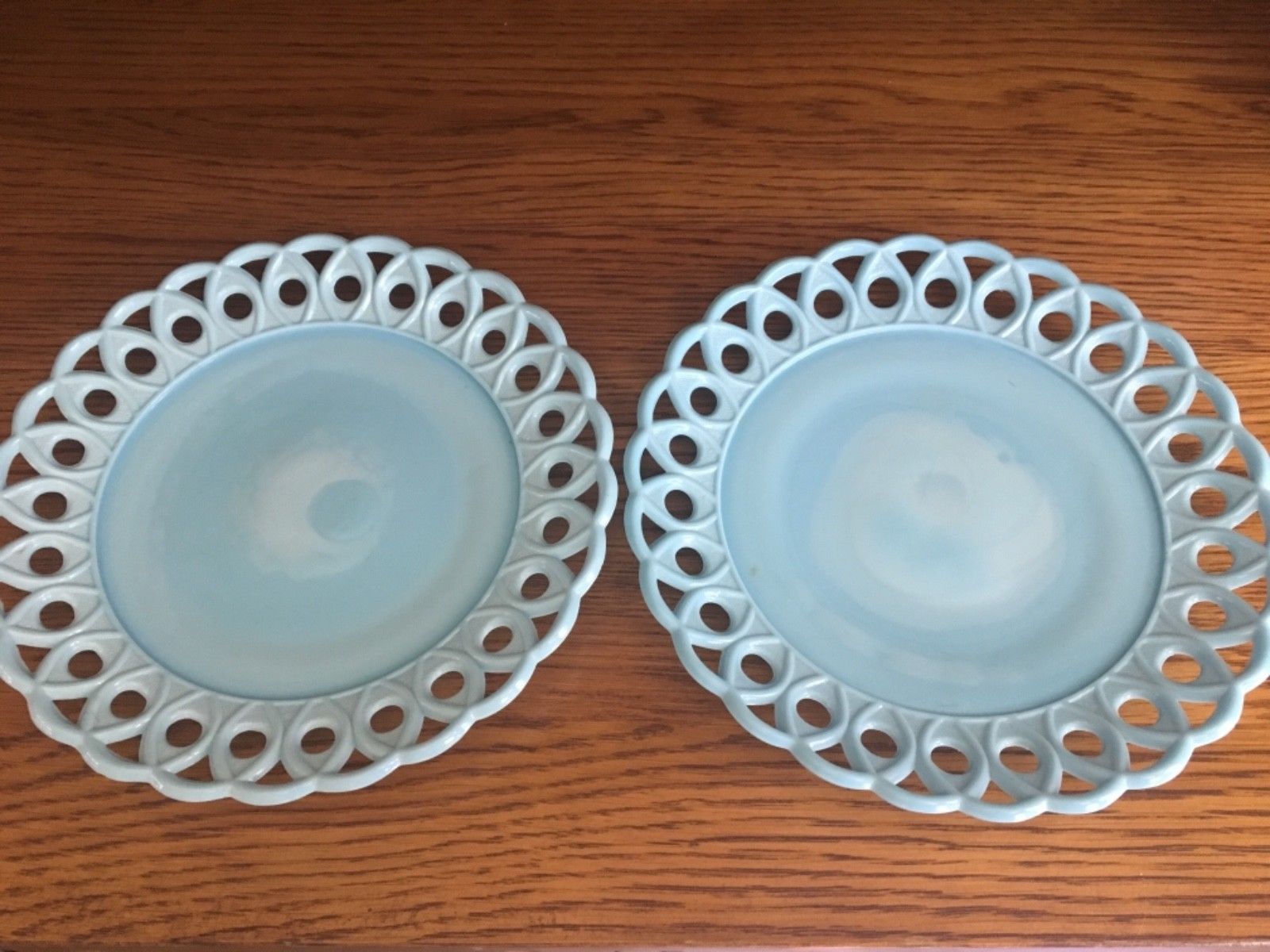 Antique blue milk glass plates, set of 2. Excellent condition.