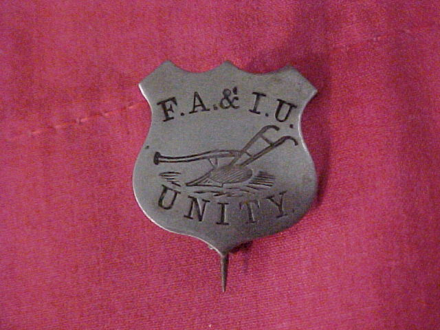 Title (ebay affiliate link): Original ca 1870s-1890s Farmers Alliance & Industrial Union Lapel Badge; FA & IU