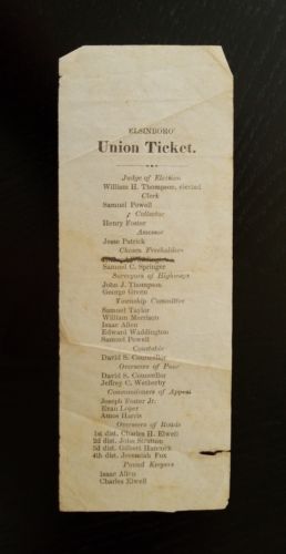 Title (ebay affiliate link): 1860''s Union Election Ticket ~ Clerk ~ Samuel Powell ~ Elsinboro, New Jersey