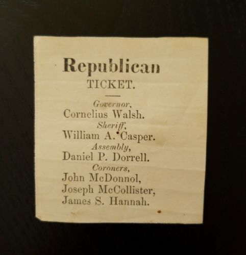 Title (ebay affiliate link): 1800''s REPUBLICAN Election Ticket ~ Governor-Cornelius Walsh ~ New Jersey