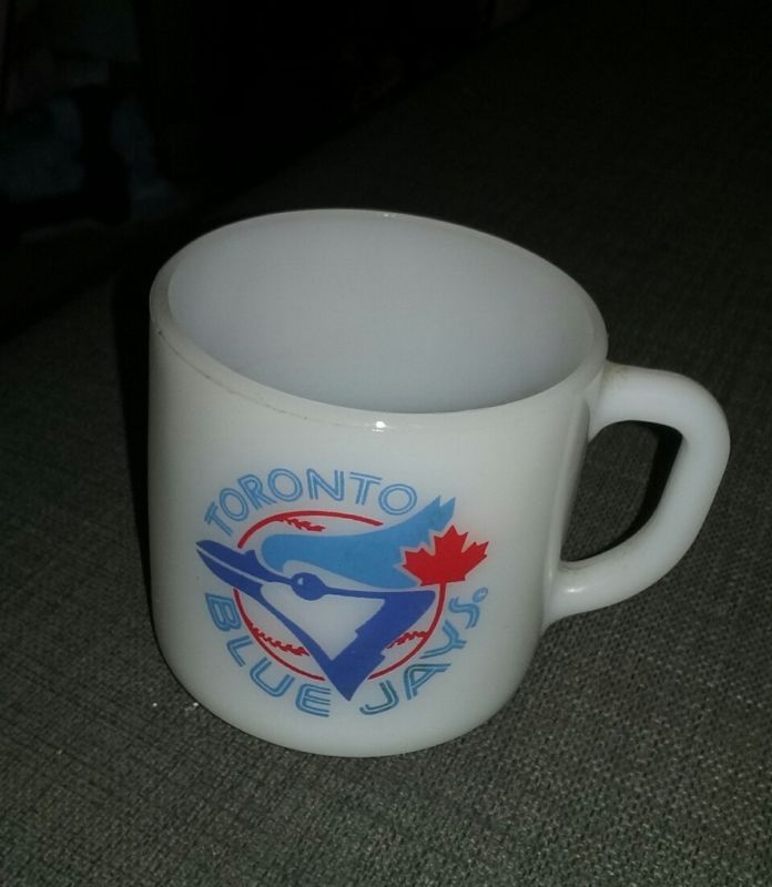 Vintage anchor hocking fire king Toronto Blue Jays milk glass mugs cups rare