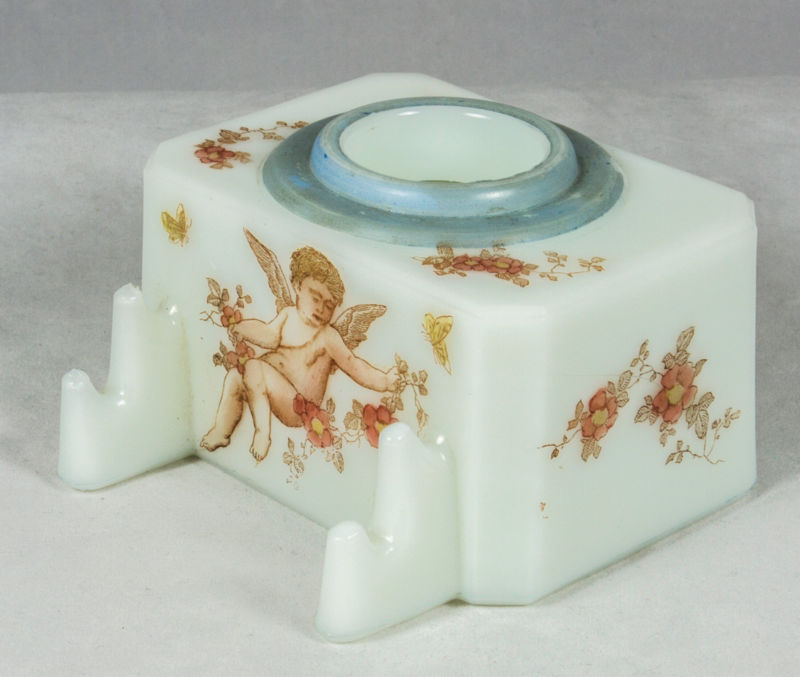 Title (ebay affiliate link): VICTORIAN ANTIQUE INK WELL MILK Glass Transfer Cherub Flowers Inkstand c.1800