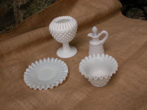 "FENTON" HOBNAIL MILK GLASS 4 PC. LOT