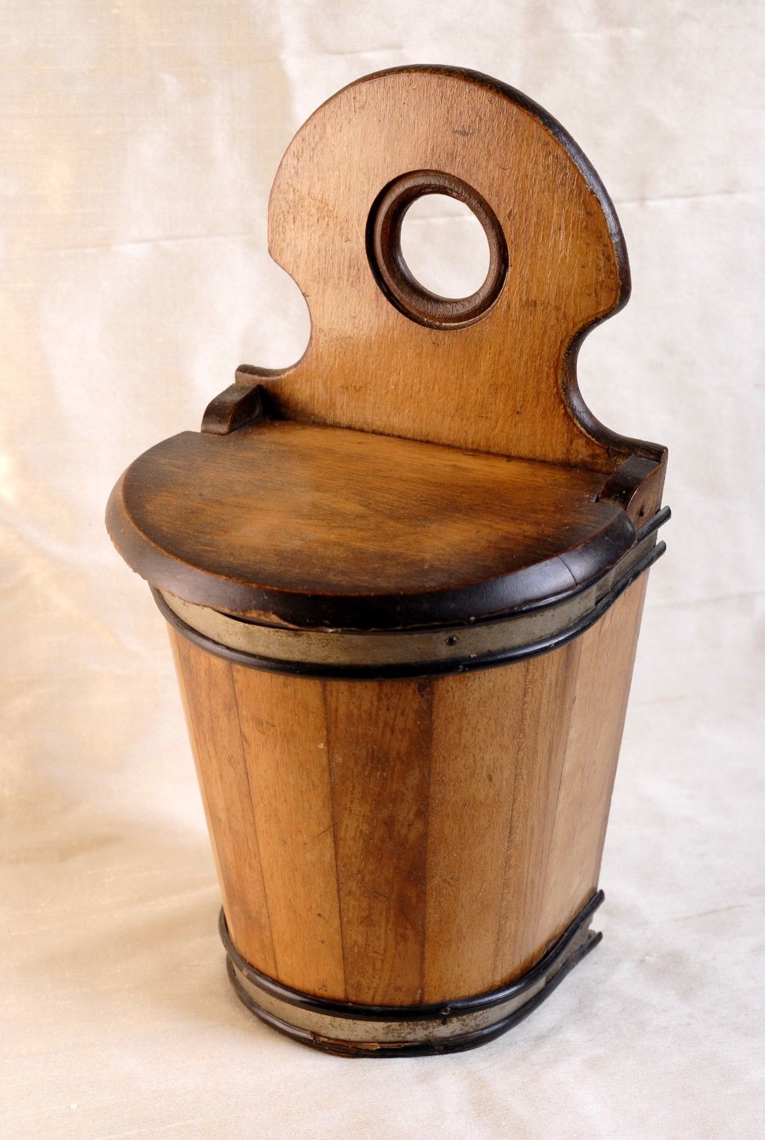 Title (ebay affiliate link): ANTIQUE TREEN SALT CELLAR / BOX WITH HINGED LID ~ WALLBOARD FOR HANGING ~ NR