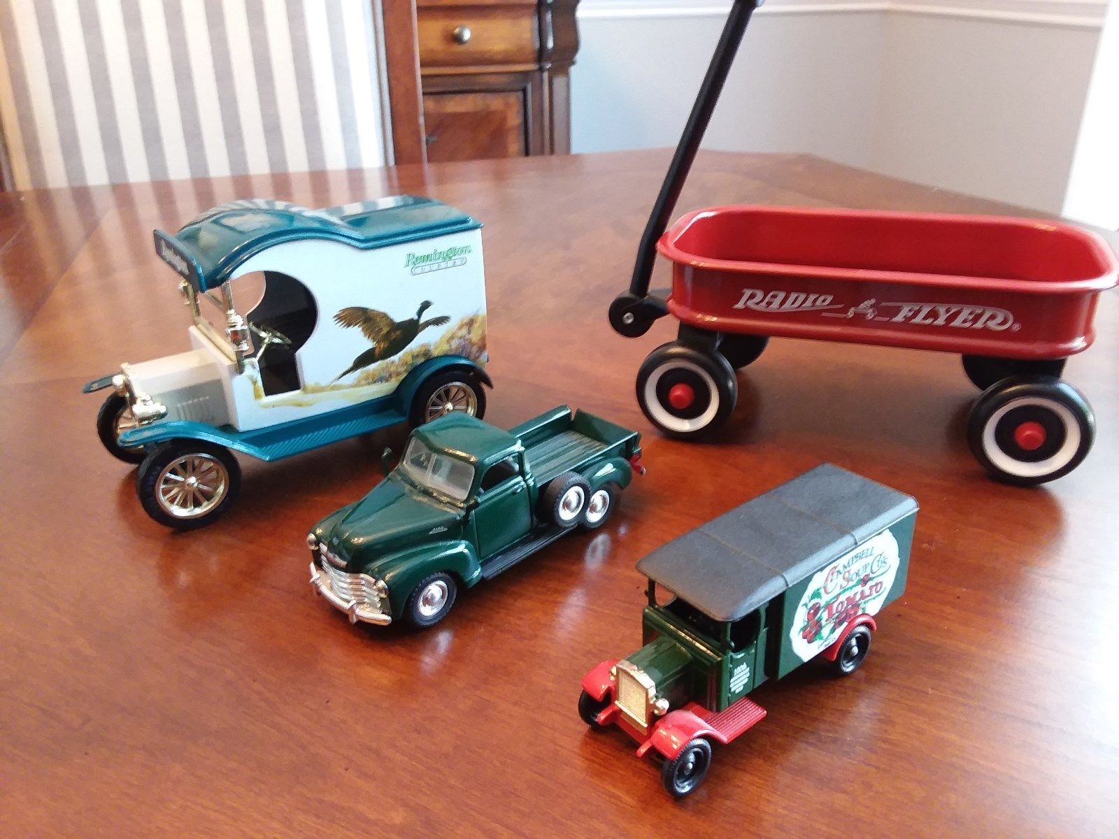 Title (ebay affiliate link): Vintage Cambell''s Soup Truck, Remington Truck, Radio Flyer Wagon, Ford Truck