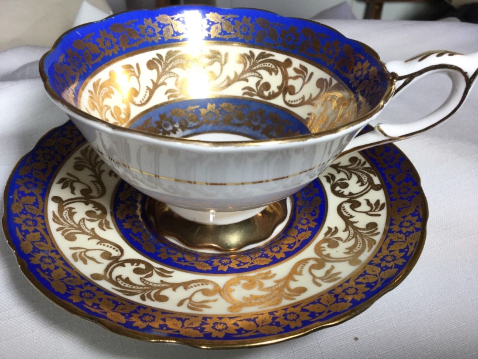 ROYAL STAFFORD BONE CHINA CUP/SAUCER ENGLAND BUCKINGHAM BLUE/GOLD
