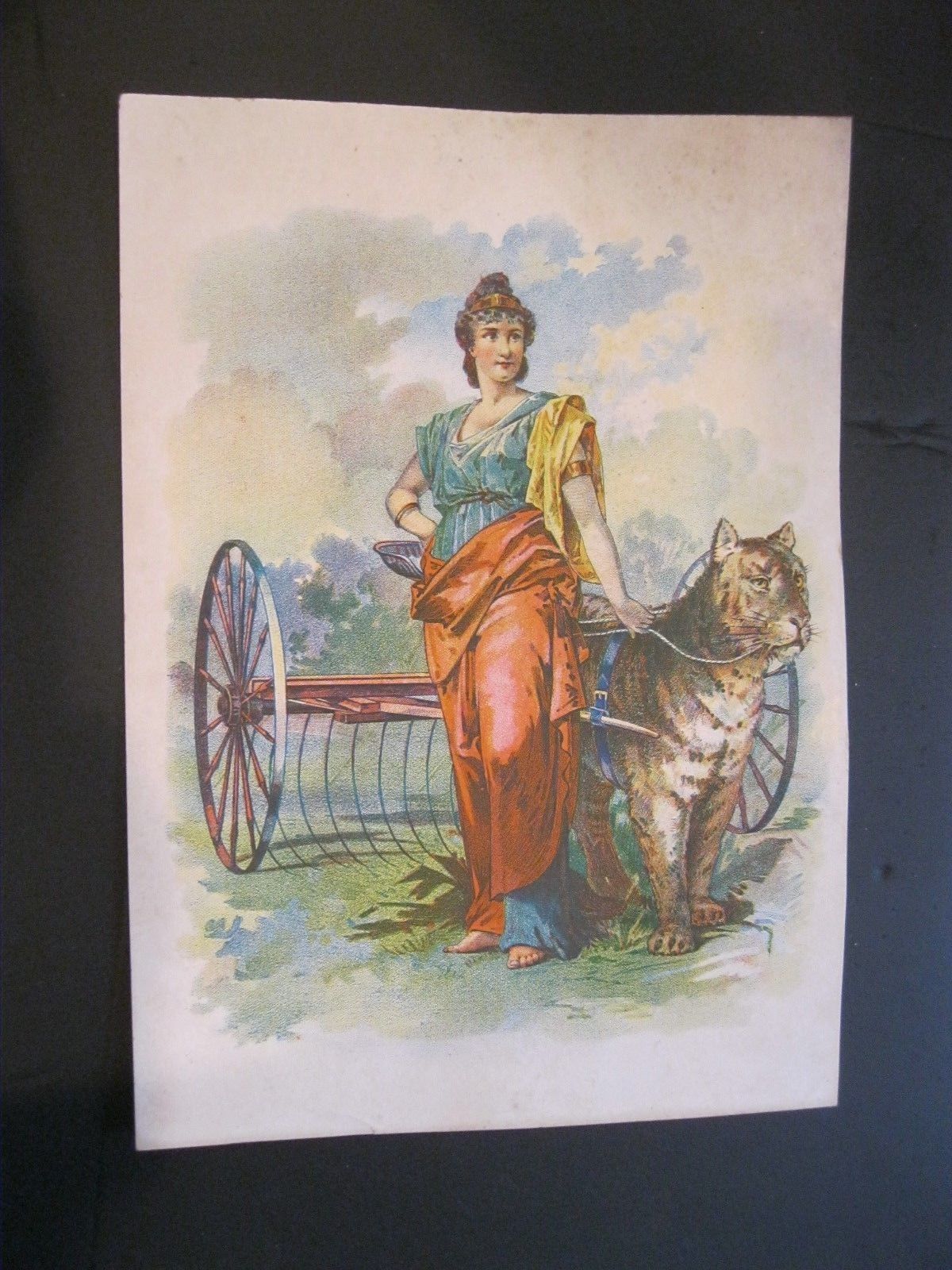 Victorian Trade Card RARE Tiger Rake Farm Lady Liberty WILD Cat Tiger Roman 43