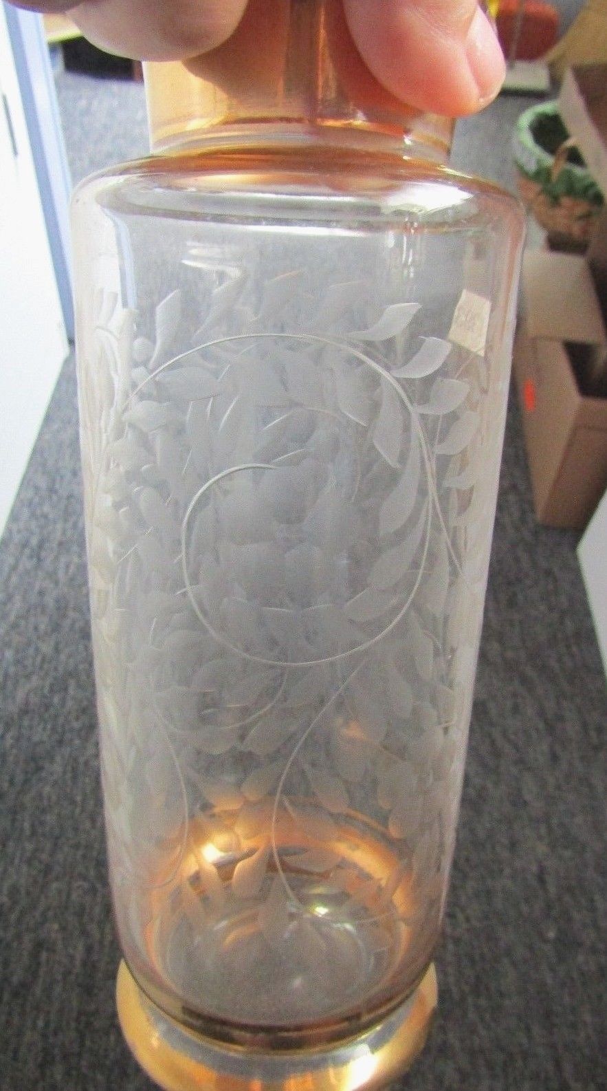 DEPRESSION GLASS ETCHED GOLD TRIM DOUBLE SPOUT COCKTAIL PITCHER
