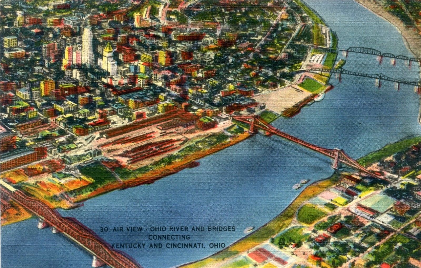 Title (ebay affiliate link): Air view of Ohio River & Bridges between Kentucky & Cincinnati Ohio postcard