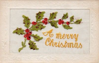 A MERRY CHRISTMAS: WW1 EMBROIDERED SILK POSTCARD