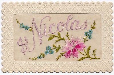 St NICOLAS: RARE 1920s EMBROIDERED SILK POSTCARD