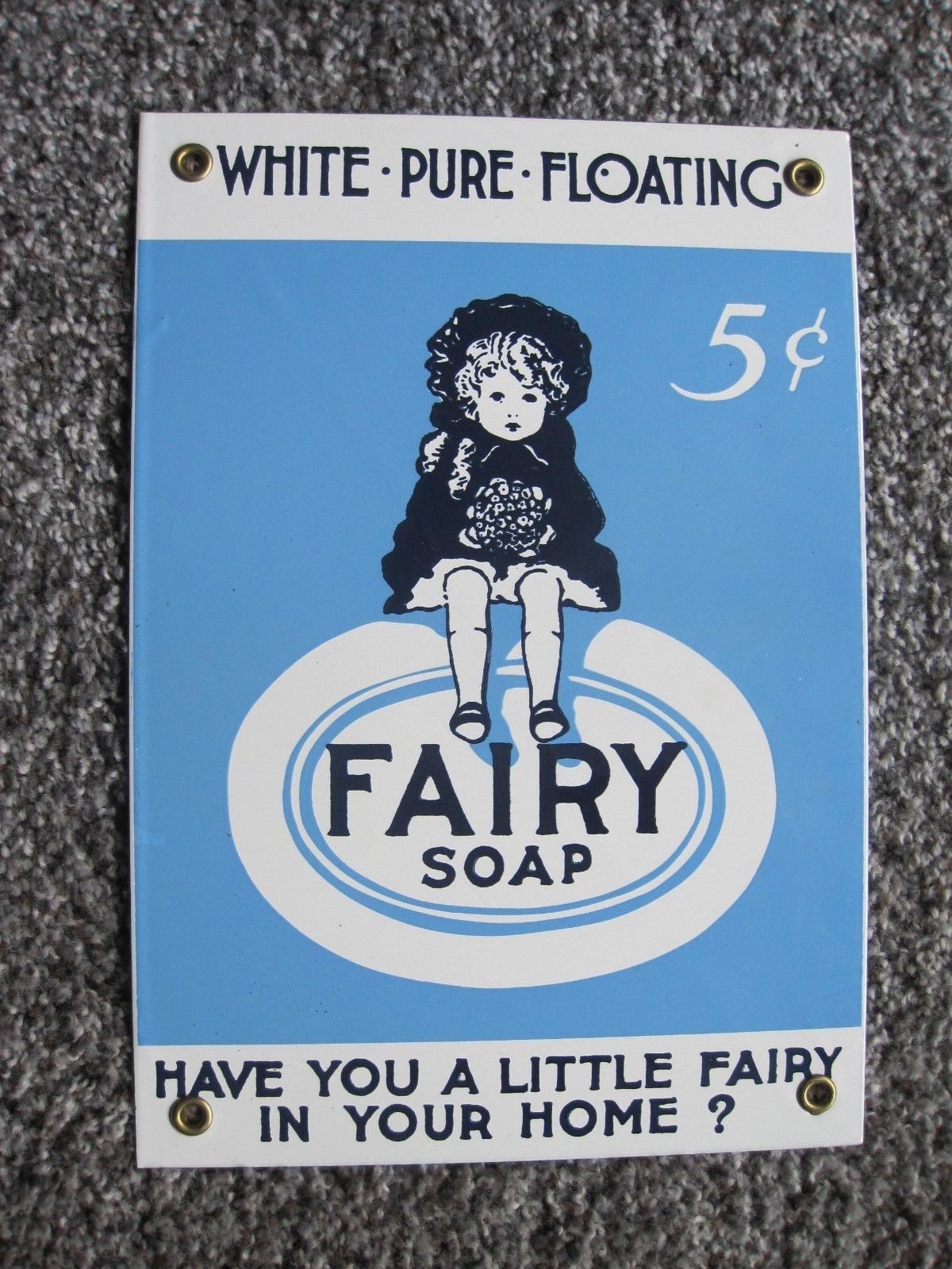 VINTAGE "FAIRY SOAP" TWO SIDED PORCELAIN SIGN