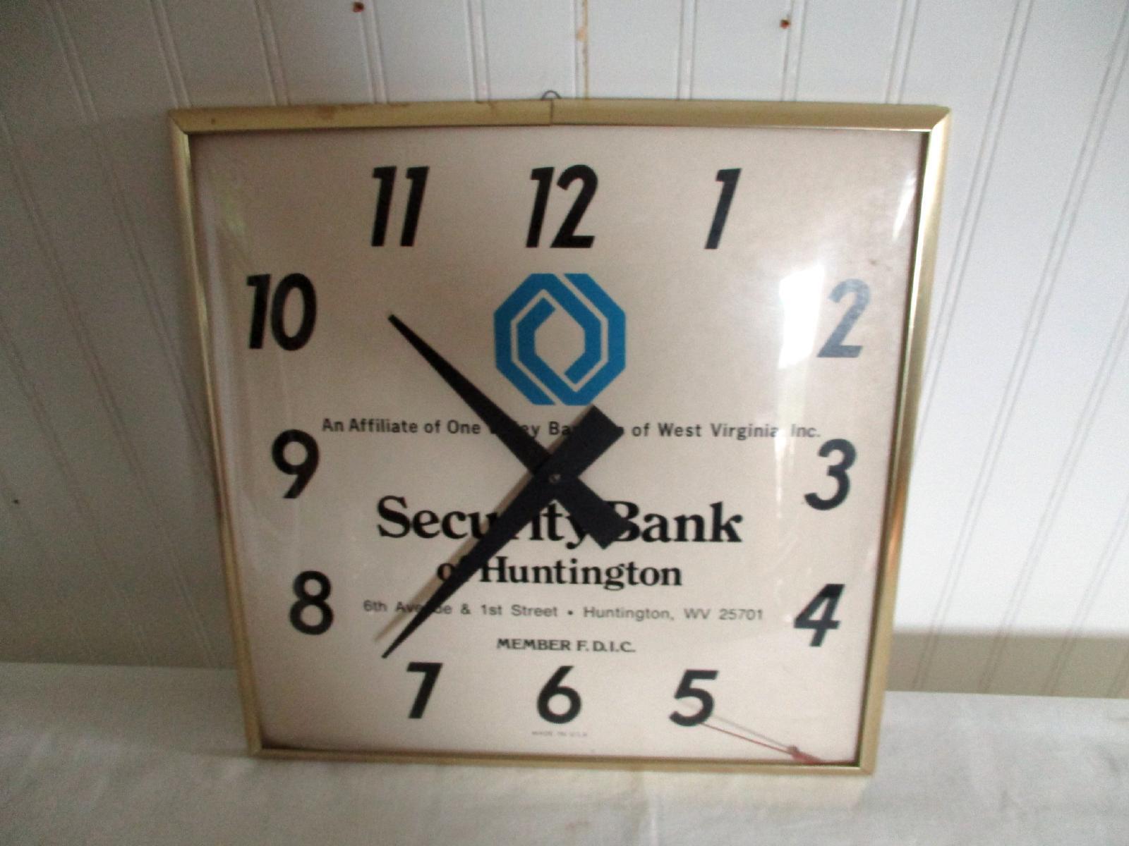 Vintage Security Bank WV Bubble Glass Advertising Wall Clock For Restoration