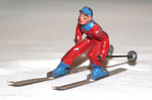 Title (ebay affiliate link): Miniature Barclay Lead Skier, on Skis, with Poles. 1930s. USA. Village Scenes