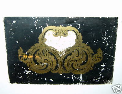 ANTIQUE ORNATE BLACK & GOLD REVERSE PAINT CLOCK TABLET